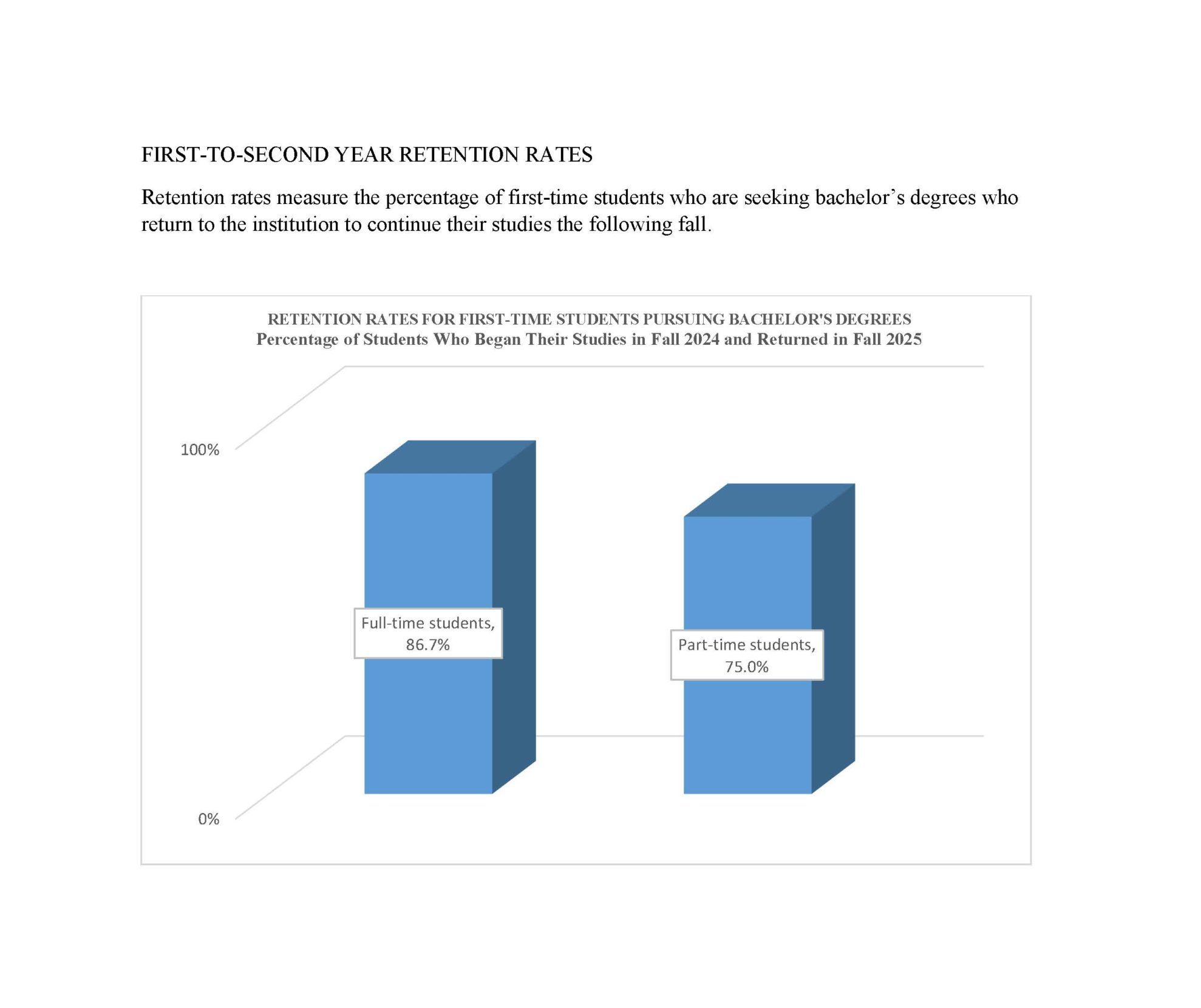 RETENTION RATES FOR FIRST-TIME STUDENTS PURSUING BACHELOR’S DEGREES